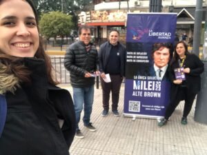 «No se planifican -las visitas de Javier Milei, como las que ocurrieron estos días en Lanús y Lomas de Zamora-. Nos avisan un rato antes que va a estar el candidato y nos organizamos y lo acompañamos. Es una estrategia estipulada y está dando un buen resultado. Milei se muestra y está con la gente», señaló Pedro Aquino, primer precandidato a concejal de Almirante Brown por la lista encabezada en local por la precandidata a intendente Emilse Armbruster.