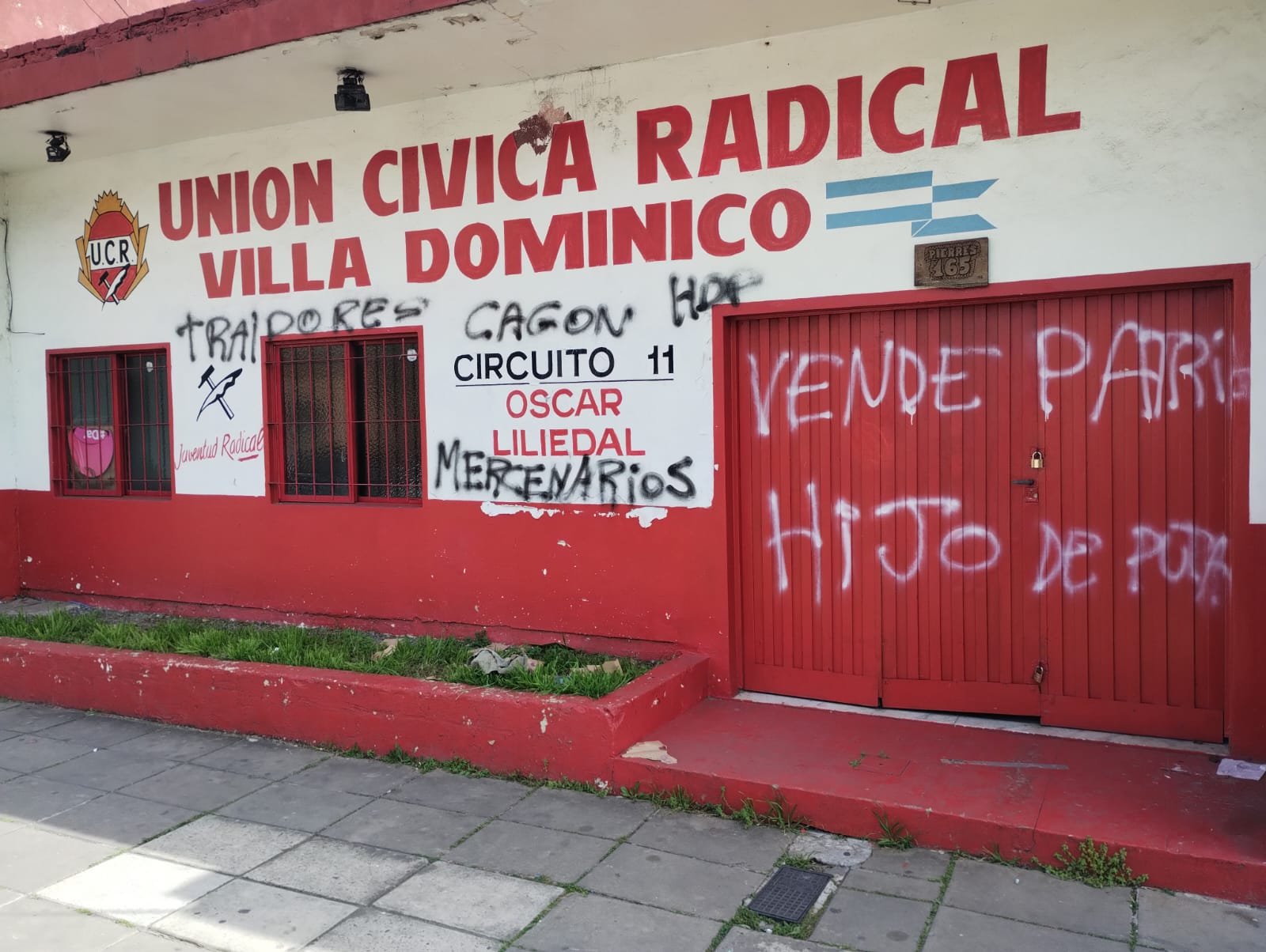 Esta mañana aparecieron la mayoría de los comités de Avellaneda con pintadas, agravios y denuncias contra la UCR. Desde el oficialismo apuntan sus miradas al sector opositor, y relativizan la “bronca” por el comportamiento de los diputados radicales que avalaron el veto presidencial el miércoles pasado.