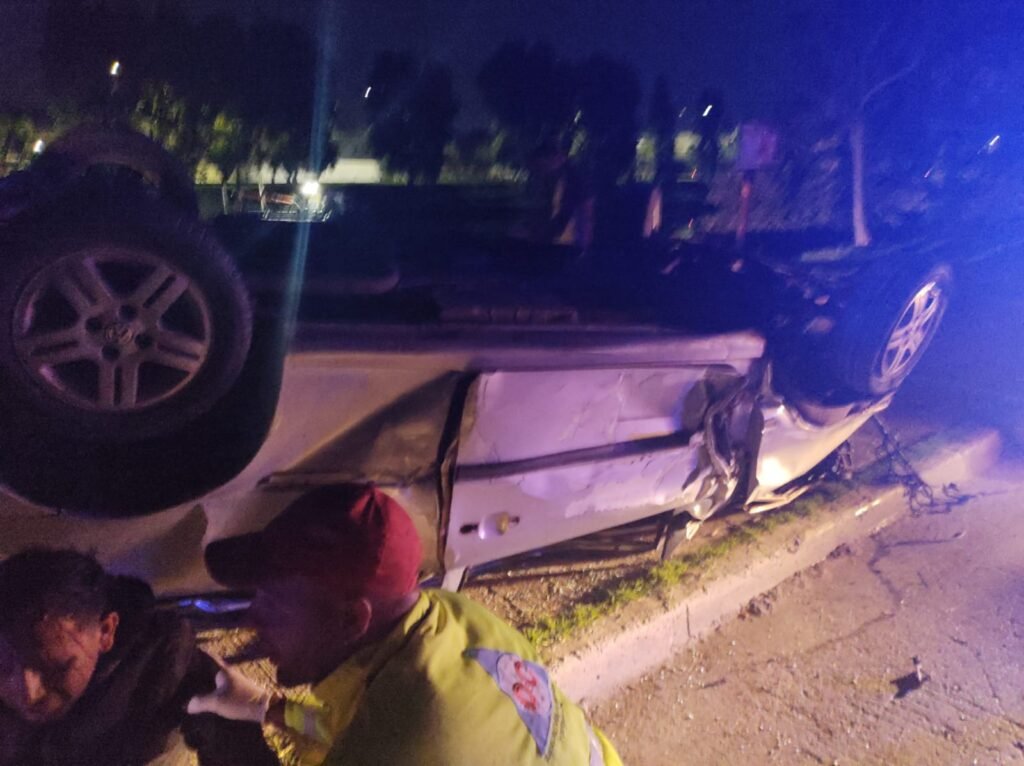 Un Volkswagen Gol con dos ocupantes chocó a gran velocidad contra un poste de luminaria en Carlos Pellegrini al 500 y seguidamente volcó, haciendo que uno de sus ocupante salga despedido del vehículo yendo a parar a orillas del Riahuelo, mientras que otro quedó atrapado.