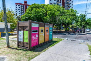 Estos módulos de recepción están producidos en su totalidad con material recuperado post-consumo y en cada uno de ellos se pueden entregar, siempre limpios y secos: papeles y cartones, metales, plásticos y vidrios.