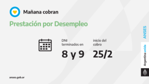 Mañana perciben la Prestación por Desempleo las personas con documentos finalizados en 8 y 9.