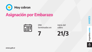 Con la utilización de la tarjeta de débito, hoy cobran la Asignación por Embarazo las titulares con documentos finalizados en 7.