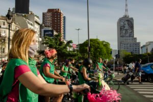 La Caravana en la Ciudad de Buenos Aires hacia el Congreso, organizada por la Campaña Nacional por el Derecho al Aborto Legal, Seguro y Gratuito, a la que se sumaron otras organizaciones, incluyó bicicletas, motos, skate y patines, además de distanciamiento social y medidas de seguridad para prevenir el contagio de coronavirus, y no se permitió personas de a pie.