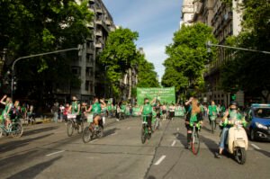 En la ciudad de Córdoba, la «Caravana Verde» abarcó varias cuadras y recorrió calles céntricas en bicicletas, patines, motos, autos u otros medios de movilidad.
