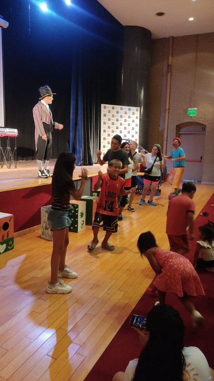 A continuación, el dúo de payasos Garabatitos, provenientes de Monte Grande y con más de 20 años de trayectoria, se encargó de animar la tarde con trucos de magia, globología, juegos, música y baile. El ambiente se llenó de risas y alegría.