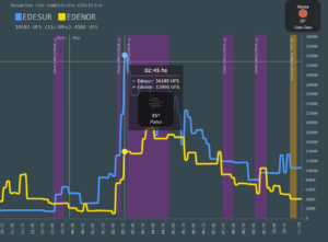 Esta situación que se «complicó» esta madrugada con las tormentas desatadas en la región, generó a eso de las 2 de la madrugada un pico de usuarios sin electricidad de 34.185.