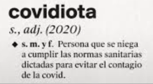Entre la familia de palabras derivada, detallaron «covidiotez», a la que definieron como la «actitud o cualidad de una persona que se niega a cumplir las normas sanitarias dictadas para evitar el contagio de la covid».