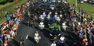 Cientos de motos acompañaron al cortejo fúnebre por todo el camino y miles de personas a la vera de las autopistas se reunieron para dar el último adiós.