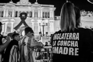 Los cánticos de «Maradona fue más grande que Pelé», «El que no salta es un inglés» y la canción homenaje que le compuso el cordobés Rodrigo cortaban ese silencio respetuoso que predominaba durante la mañana.