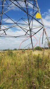 Se trata de varias estructuras metálicas de las líneas 33/34, que recorre los partidos de Esteban Echeverría, Almirante Brown, Glew, Presidente Perón y Ezeiza. Las torres están a 800 metros entre sí, en una zona descampada.