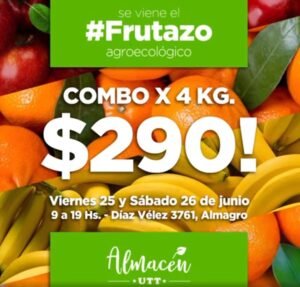 Desde hoy y mañana sábado 26 de junio la Unión de Trabajadores y Trabajadoras de la Tierra (UTT) realizará un #FRUTAZO popular en sus puntos de venta de Capital y Buenos Aires. Las ofertas incluyen un combo de 4 kilos de frutas agroecológicas a sólo $290.