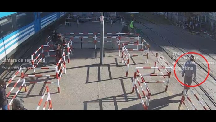 En ese momento, circulaban trenes en ambos sentidos y el individuo es embestido por una de las formaciones. El incidente es observado desde las cámaras de seguridad de Trenes Argentinos.