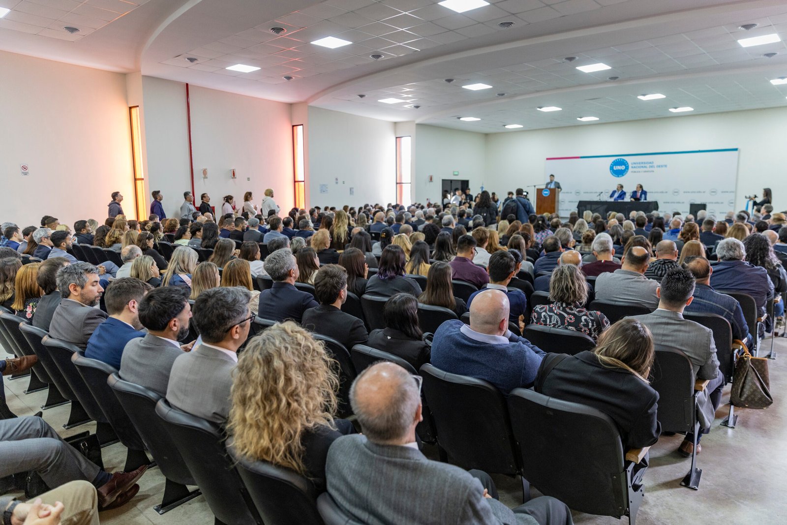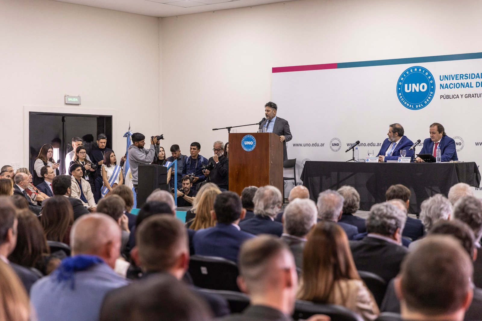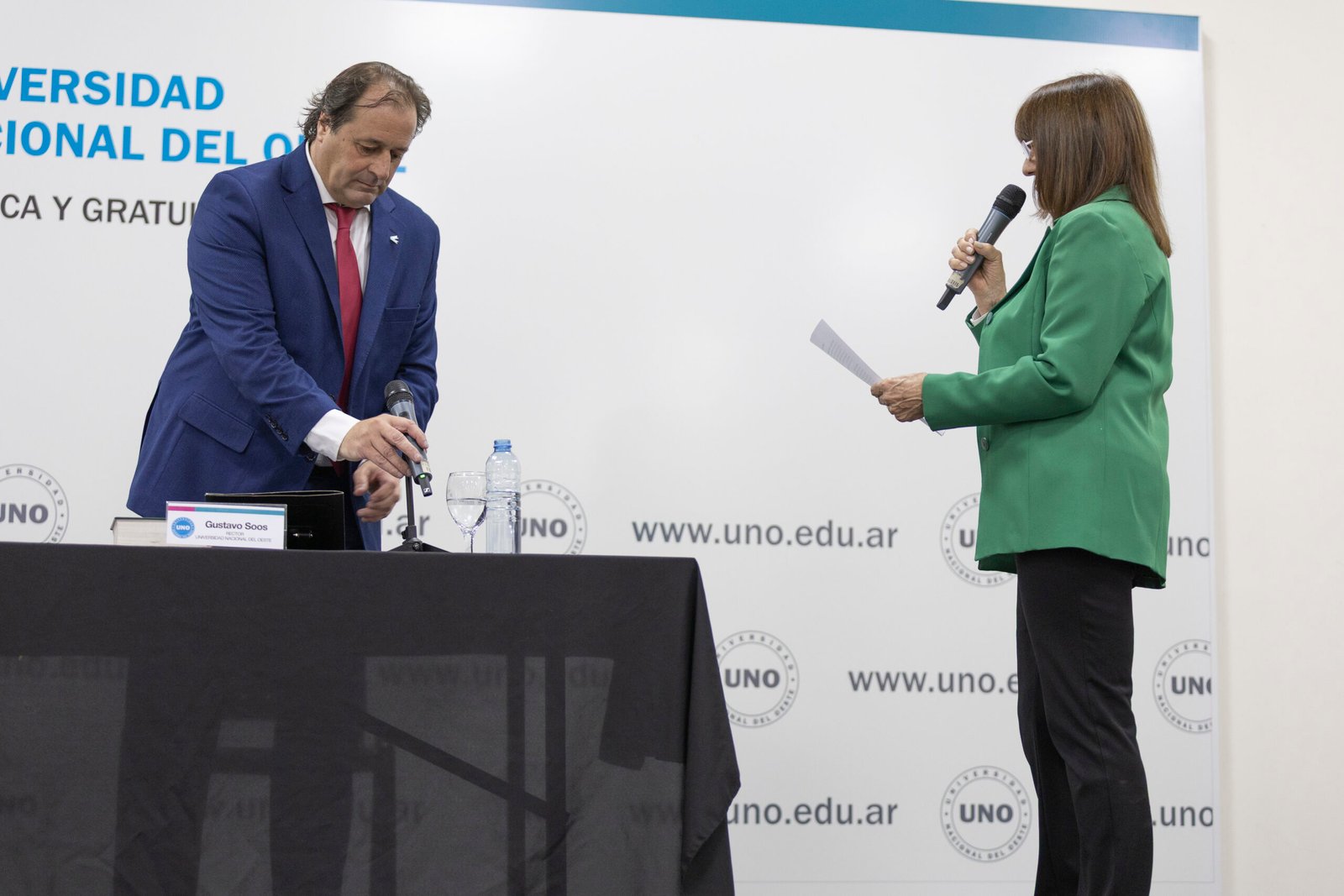 Con el auditorio del campus universitario colmado y en un marco de profunda significación institucional, el Dr. Gustavo Soos asumió como nuevo Rector de la Universidad Nacional del Oeste (UNO).