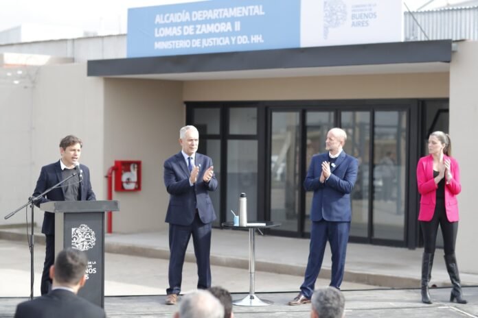 En el marco del Plan de Infraestructura Penitenciaria, el gobernador de la provincia de Buenos Aires, Axel Kicillof, encabezó esta mañana el acto de inauguración de la Alcaidía de Lomas de Zamora, junto al jefe de Gabinete, Martín Insaurralde; el ministro de Justicia y Derechos Humanos, Julio Alak; y la directora provincial de Alcaidías Departamentales, Paula Montero.