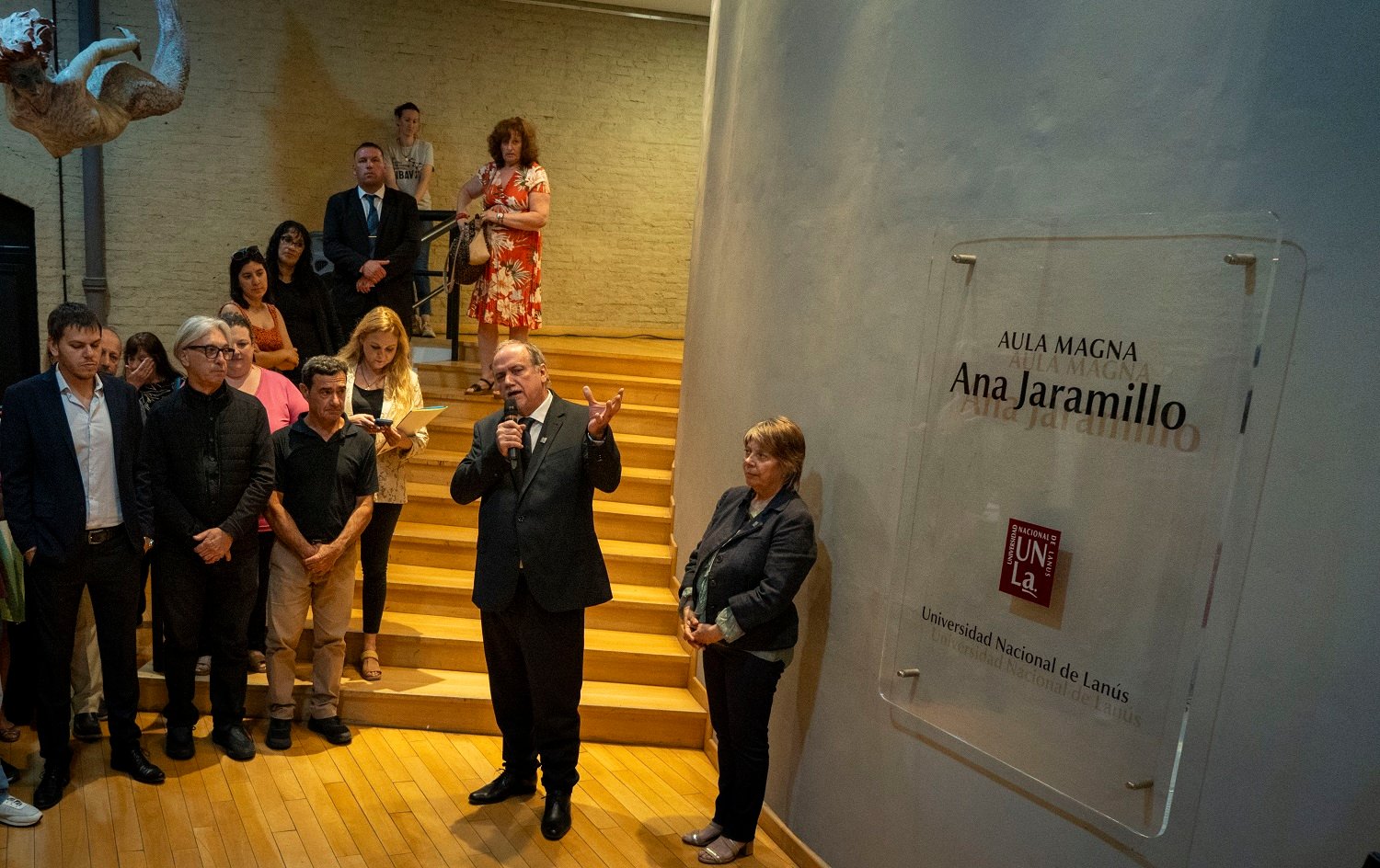 La Universidad Nacional de Lanús (UNLa) renombró su Aula Magna con el nombre de Ana Jaramillo, en reconocimiento a su trayectoria académica, política y de gestión, y a su rol central en la creación y consolidación de la casa de estudios. La decisión fue formalizada mediante una resolución del Consejo Superior, aprobada por unanimidad en su décima reunión del año 2025.