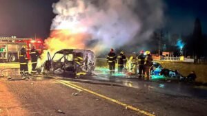 Ocurrió durante esta madrugada en el kilómetro 117 de la ruta 205, donde colisionaron un Ford Ka, un Renault Duster y un vehículo utilitario, que se incendió por completo.