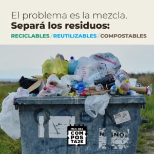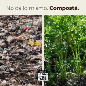 Y también nos reunimos con municipios, con organizaciones de la sociedad civil, instituciones educativas y organismos gubernamentales, para generar soluciones colectivas, para generar políticas públicas e incentivar a la separación en origen de los residuos (organizarlos ahí mismo donde se generan). Esto significa la reducción del transporte hacia basurales, reduciendo el consumo de combustibles, y al disminuir el material orgánico que va a los rellenos sanitarios, evitamos que la basura se pudra.