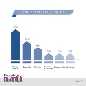 - 90% de los Femicidios fue perpetrado por alguien que conocía a la víctima. El 60% era pareja o ex pareja.