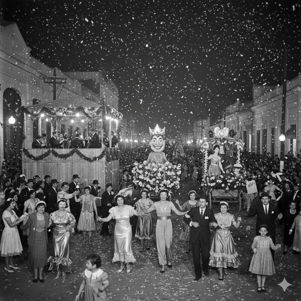 Entre carrozas, antifaces y bailes familiares, la ciudad celebraba cada verano al compás del Rey Momo.