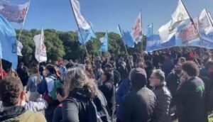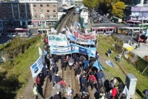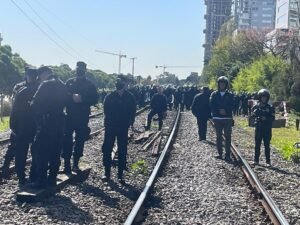 Los manifestantes, que cortaron las vías del tren San Martín, a metros de la estación Palermo, en la ciudad de Buenos Aires, son empleados de empresas tercerizadas, dentro del ámbito de «cuidados y seguridad», que reclamaban de esta forma el «pase a planta permanente» en Trenes Argentinos.