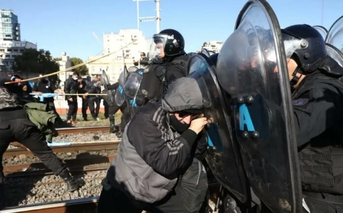 La Policía Federal desalojó en la tarde del jueves a los manifestantes que se encontraban sobre las vías del Ferrocarril San Martín, a la altura del barrio porteño de Palermo, en el marco de forcejeos y gases lacrimógenos, tras una orden del juez federal Marcelo Martínez de Giorgi.