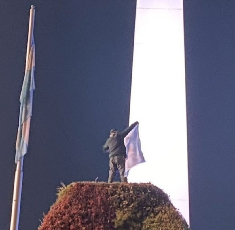 Se trata de Alan Frete quien había subido a una de las letras del jardín vertical de la Plaza de la República para flamear la bandera argentina. Perdió el equilibro, cayó al vacío y murió en el acto.