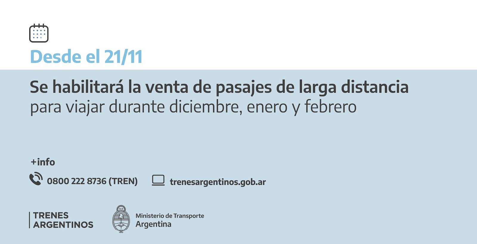 Ante cualquier duda o consulta, el pasajero puede ingresar en https://www.argentina.gob.ar/transporte/trenes-argentinos